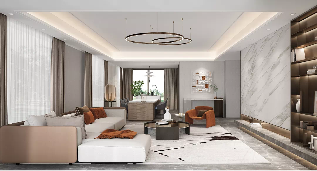 该户型打造了上下层,双会客厅设计,超大尺度开间,兼具会客功能。