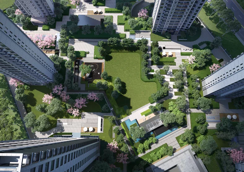 在社区内,项目打造了约10000㎡中央园林,还有约1500㎡的超大草坪,让居住者仿佛置身于城市森林公园,推窗即可望见四季风景。