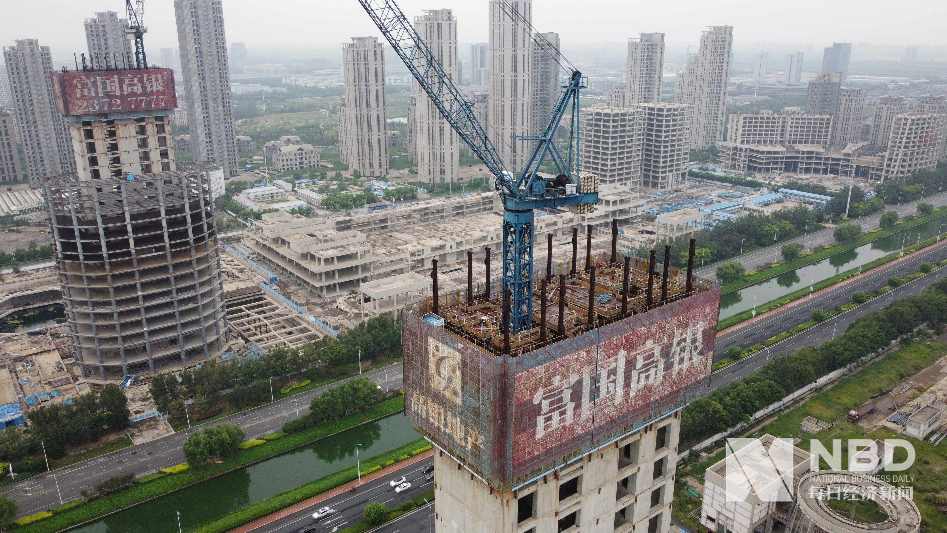 《每日经济新闻》记者看到,117大厦一侧有数栋钢结构裸露的大楼停工已久,楼顶还保留着塔吊最后静止的模样,开发商“富国高银”“高银地产”的广告牌依然可见。