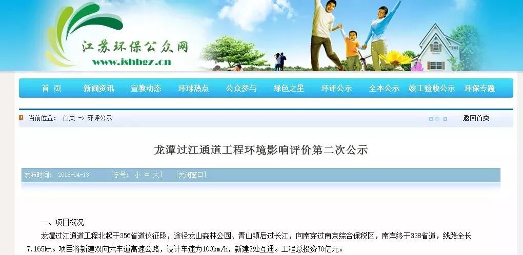 今年4月,江苏环保公众网发布了二次环评公示,龙潭过江通道项目取得了新进展。