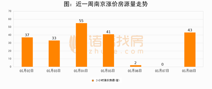 根据诸葛找房数据显示,南京24小时涨价房源量为43套,较05月07日增加43套,环比上涨0%。与此同时,涨价房源占比小幅扩大,业主信心有所提升。