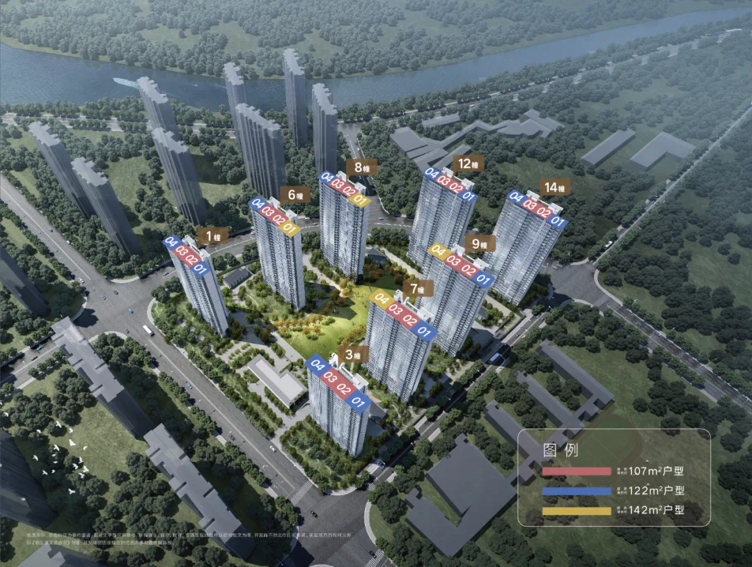 项目规划打造8栋27-32层高层住宅,建筑面积约107、122、142㎡三房起步的全改善户型。两梯四户,均采用独立玄关、LDK一体化户型设计。