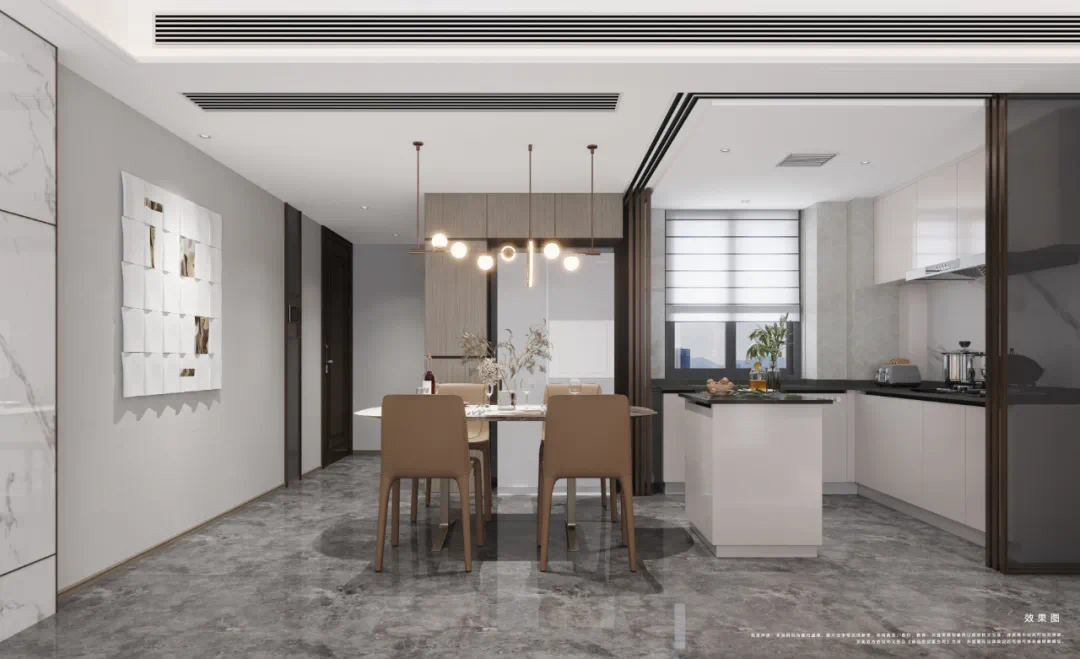 厨房选用高阶品牌油烟机、洗碗机、凉霸、可抽拉水龙头,同时灶具均预留大范围操作区,122及142㎡户型预留西式岛台。还配备具有RO反渗透技术前置净水器,保障健康生活。
