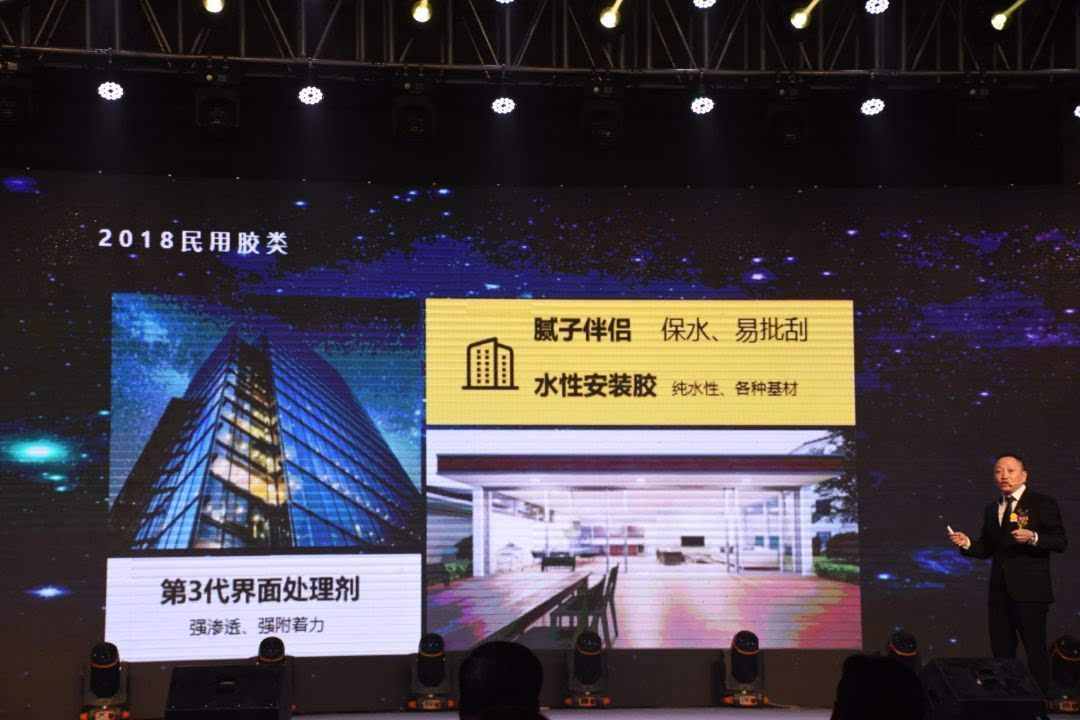 应用于家装领域的建筑装修胶共有3款新产品,排名前列款是第三代界面处理剂,这款新品对于材表面具有极强的渗透性与附着力,能有效增强黏结性能。此外,这款处理剂具有多孔吸收性,在潮湿气候环境下,在做墙面批腻子基层界面处理时能够防止基材表面开裂、空鼓、脱落;第二款是腻子伴侣,腻子伴侣是传统家装胶水的升级产品,采用顶立先进的除醛工艺生产而成,具有极强的保水性,有效增强浆料的保湿性,延长使用开放时间,并且提高了腻子刮涂时的顺滑性;第三是水性安装胶,这是一款适用范围非常广泛的水性环保创新型产品,施工操作时更方便快捷;其无可比拟的高效性适用于各种常见基材。
