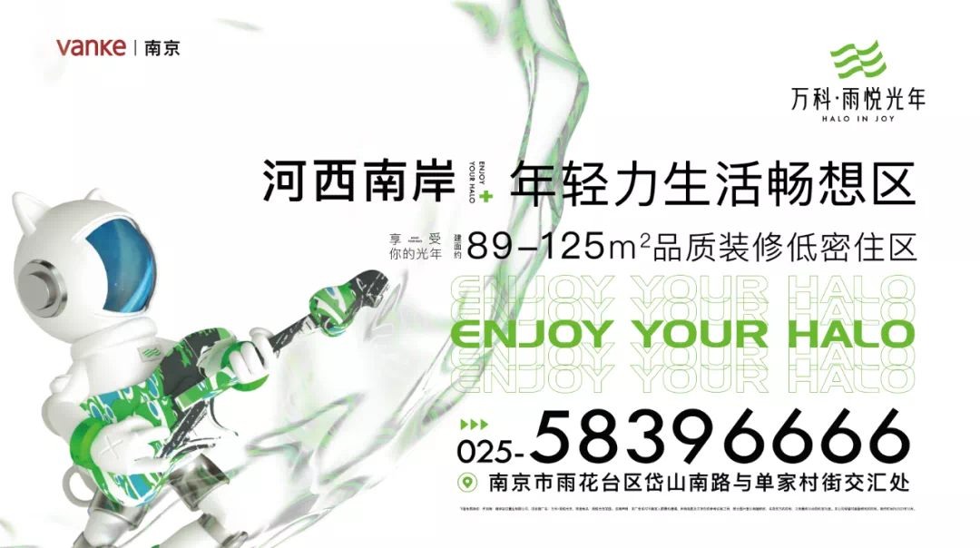 法律声明:本资料为要约邀请,不作为要约或承诺;相关宣传内容不排除因政府相关规划、规定及出卖人分期规划、未能控制等原因而发生变化;买卖双方的权利义务以双方签订的《商品房买卖合同》及其补充协议、附件等书面文件为准;所有信息及文字仅供参考识别之用,部分图片曾以电脑修改,本公司保留对画面修改的权利。开发公司为:南京裕岱置业有限公司,项目推广名:万科·雨悦光年,核准地名:雨悦光年花园。本资料所发布的内容为2021年10月19日前的信息,敬请留意较新资料。