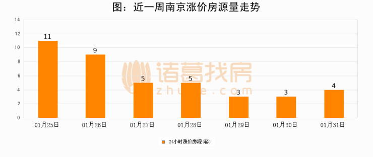 根据诸葛找房数据显示,南京24小时涨价房源量为4套,较01月30日增加1套,环比上涨33.3%。与此同时,涨价房源占比小幅扩大,业主信心有所提升。