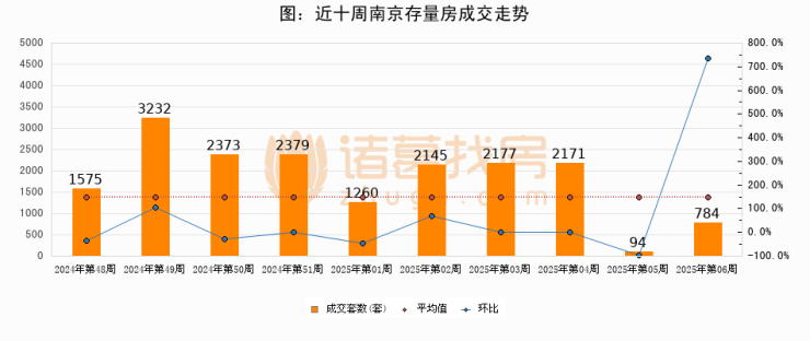 存量房方面,第06周南京存量房成交784套,较上周增加690套,环比上涨734%。从近十周成交走势来看,周均成交套数为1819套,本周低于平均水平56.9%。