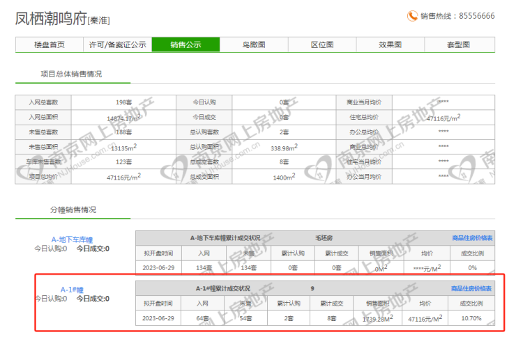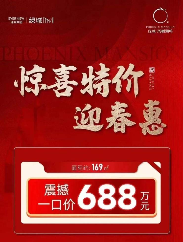 同样位于大校场的绿城凤栖潮鸣,也推出了特价房,一口价688万,面积169㎡,折合单价仅约4万/㎡!
