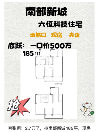 总价500万,就能拿下一套南部新城185平的新房,单价仅2.7万/㎡!