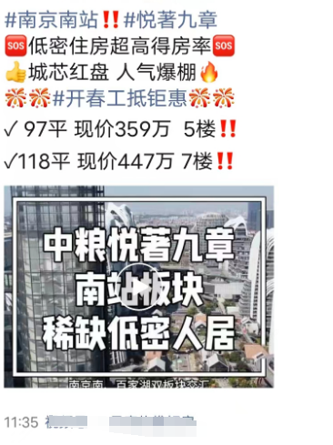 南站的悦著九章97平的5楼房源、118平的7楼房源,单价只要3.7万/平。
