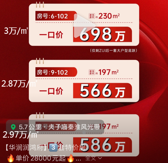 原价700万的云锦四季,折后590万;原价856万的润淮府,折后510万......