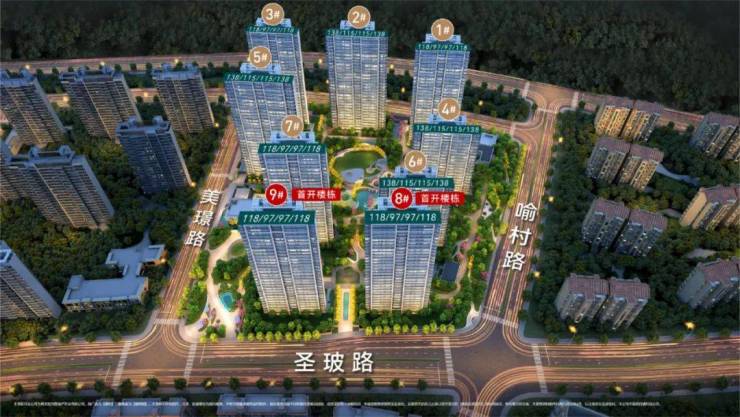 目前金基雅玥在售8、9#房源,户型建筑面积97、118㎡,全装修销许均价32880元/㎡,另有2800元/平装修升级包可选。