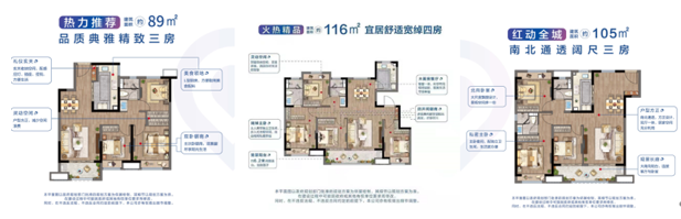滨江孔雀城打造建面约89-116㎡阳光三/四房,多面积合理规划,居住功能更加完善,为现代家庭提供宽敞的生活场域。