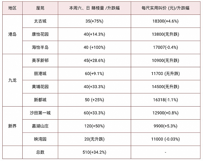 在线下门店客流量方面,中原十大屋苑本周末预约看楼量录510组预约,创下了11个月以来新高,按周增34.2%。