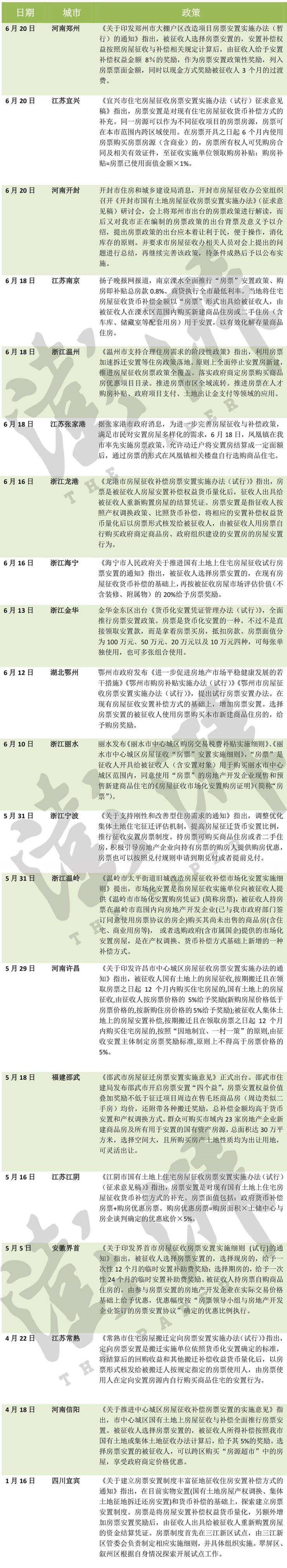 另以四川宜宾为例,今年1月,宜宾市政府办公室印发了《关于建立房票安置制度丰富征地征收住房安置补偿方式的通知》,房票安置制度首先在三江新区试点。