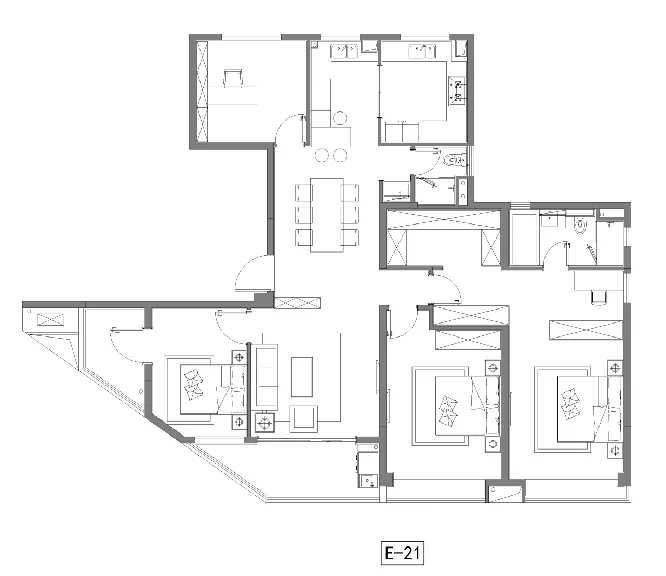 建面约160㎡户型打造的四房两厅两卫,整个户型的格局比较方正。