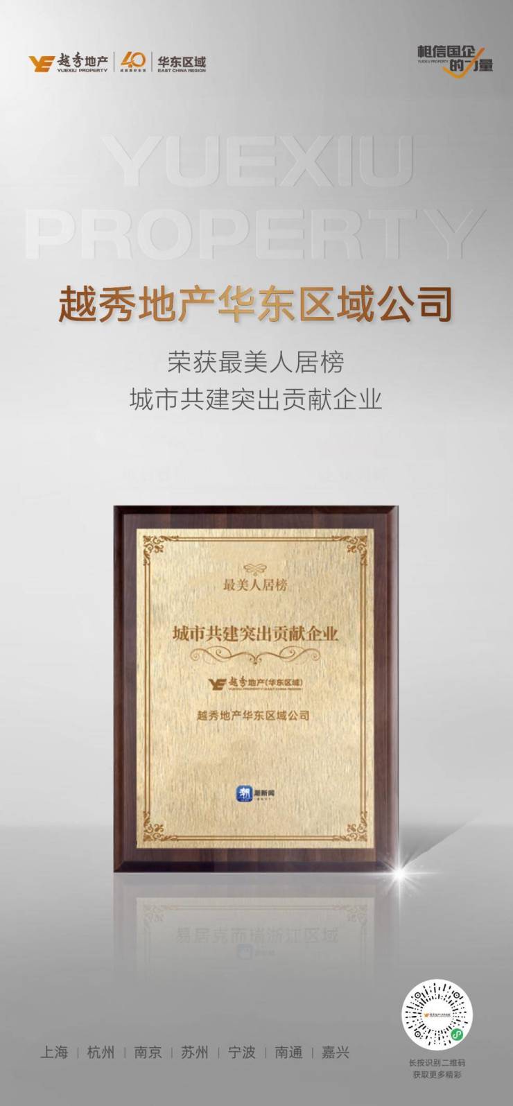 从G20时代到亚运时代,从城西大走廊到艮北新城,从星漫云渚城到星缦和润城,当杭州大踏步迈向国际舞台,开启国际化都会的雄心征程,越秀地产,始终以值得信赖的国企力量,从城市片区开发、城市TOD引领、标杆产品力营造等多种维度与模式,赋能城市发展,与杭州的伟大时代同行,并受到城市和人们的选择与信赖。荣获“城市共建突出贡献企业”只是一个新的起点,将继续激励越秀华东在城市共建的道路上勇毅前行。