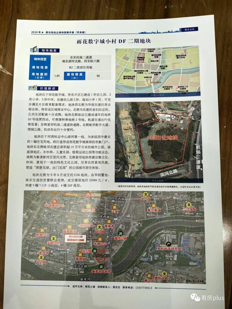 雨核地块位于雨花数字城,为该组团中最后一幅住宅用地,地块北侧为今年8月出让的G50地块,由华润、南京交通投资置业联合竞得。