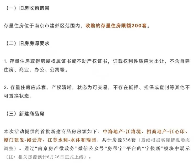 最新消息,南京市建邺区住房保障和房产局指导推动的建邺区存量房“以旧换新”试点活动将于6月26日开启,至2024年12月31日结束。