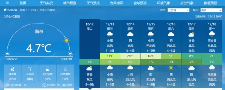 南京近日天气预报