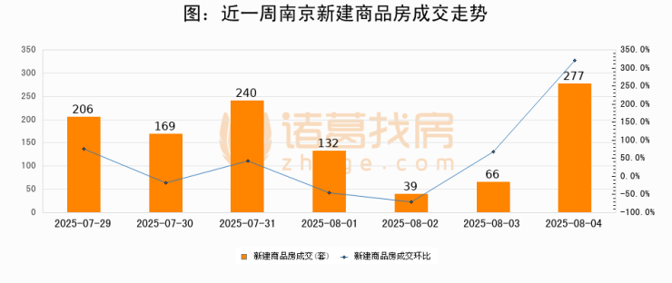 【南京成交日报】08月04日新房成交277套、二手房270套;涨价房源57套