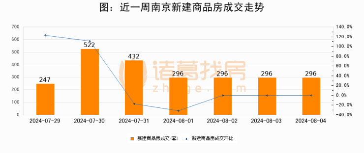 【南京成交日报】08月04日新房成交296套;涨价房源46套