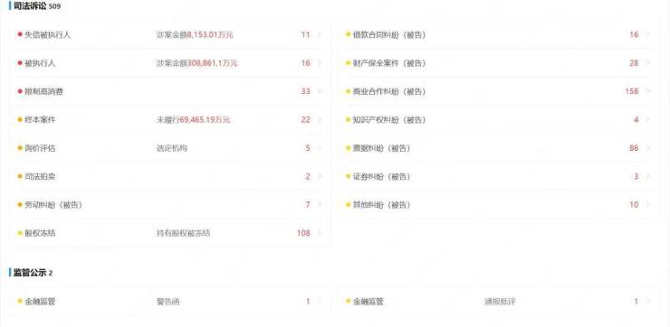 企查查资料显示,中南建设已是失信被执行人,名下还有大量被执行人(涉案金额超30亿元)、限制高消费、终本案件未履行、股权冻结等信息。
