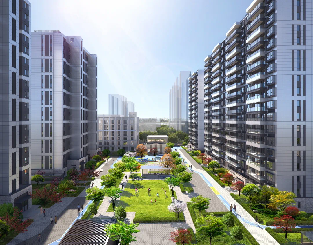 效果图项目臻心打造的高定住区,沿袭府门礼序,港湾舟形入口、绿洲形态会客厅、棉花糖乐园层层递进,演绎东方门第之尊,社区以二星绿色生态系统引领人居新风向。