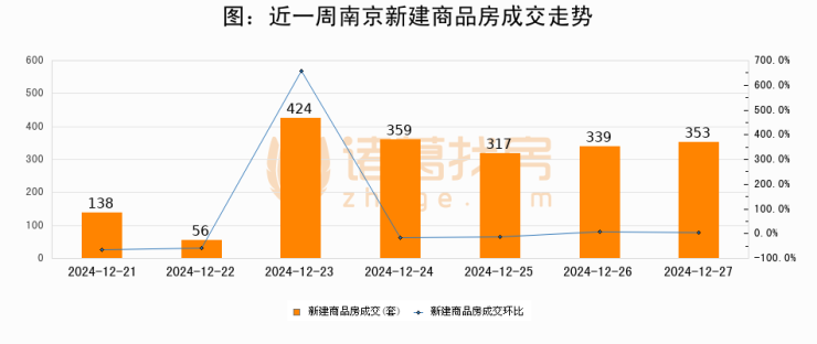 【南京成交日报】12月27日新房成交353套、二手房637套;涨价房源38套