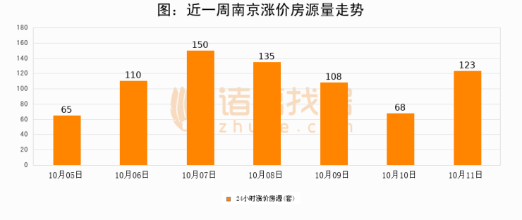 根据诸葛找房数据显示,南京24小时涨价房源量为123套,较10月10日增加55套,环比上涨80.9%。与此同时,涨价房源占比小幅扩大,业主信心有所提升。