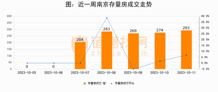 从存量房来看,2023年10月11日南京存量房单日成交293套,比昨日增加19套,环比上涨6.9%。从近一周存量房成交来看,南京存量房日均成交套数为189套,10月11日单日成交293套,高于近一周平均水平55%。