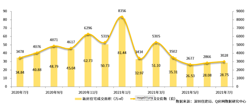 新房市场也同样不景气。据Q房网数据研究中心,深圳全市新房住宅共成交3028套,同比下跌12.94%;成交面积28.75万平方米,同比下跌17.48%。7月深圳新房住宅成交小幅回升,仍处于近一年来相对低位水平。二手市场冰封,资金受限也对新房的热度产生影响,一手市场也渐归冷静。