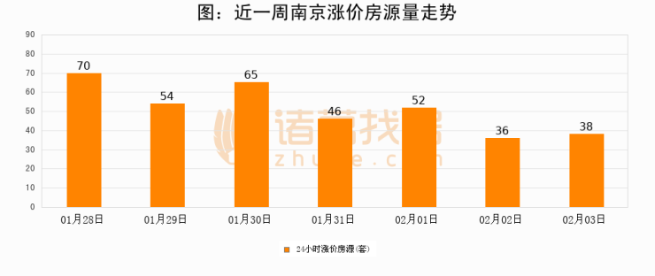 根据诸葛找房数据显示,南京24小时涨价房源量为38套,较02月02日增加2套,环比上涨5.6%。与此同时,涨价房源占比小幅扩大,业主信心有所提升。