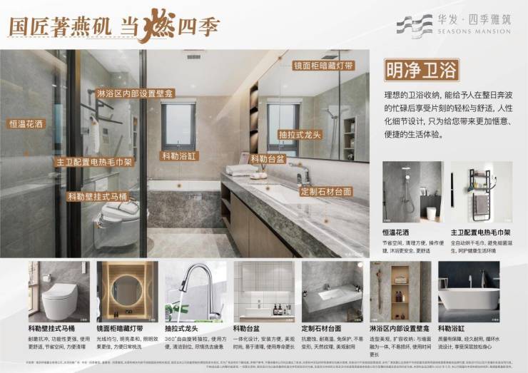 华发股份,中国房地产行业领军者,凭借国家一级房地产开发资质,聚焦住宅改善。以43载筑家经验,持续精进自身,秉承“品质中国,匠心筑家”的理念,不断赋新居住标准,3年来,于南京布局8子,与城市共生长。华发·四季雅筑臻选家装用材,室内家居多选用国际一线奢装品牌,以国际的视野精研生活肌理,雕琢住家细节,凭借精益求精的态度为业主倾呈高质感生活。空间的务实主义,铺陈归家礼序,四季雅筑创新性打造两大柜体收纳系统、四大厨卫收纳空间,生活有条不紊,空间轻松翻倍。