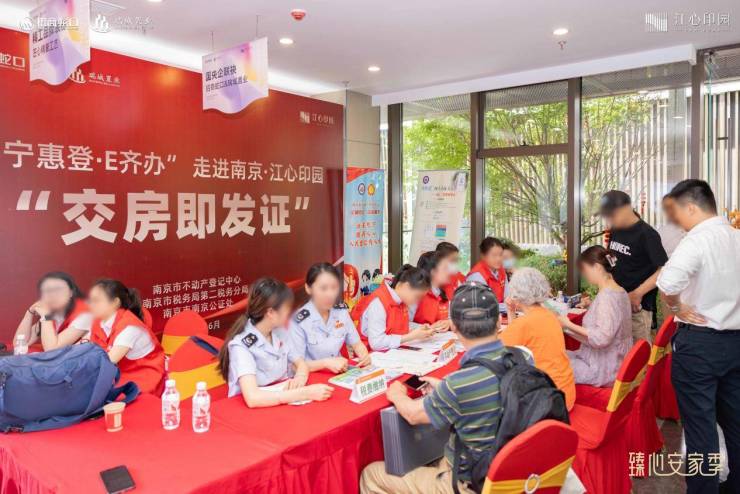 交房现场,流程、须知一目了然,江心印园的工作人员以饱满的热情与精神面貌迎接业主,将贴心融入签到验证、审核资料、办理手续等各个环节,交付大使全程陪同给予悉心指导,让归家之旅省心、省时、省力。
