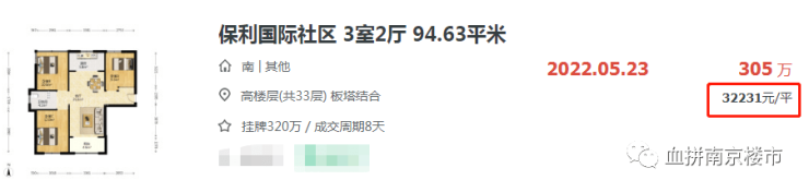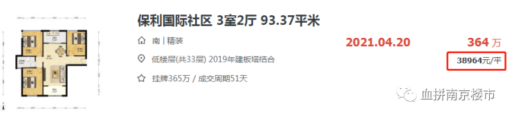 近日,同样位于燕子矶的保利国际社区成交了一套94.63平的二手房,成交单价仅3.2万/㎡!