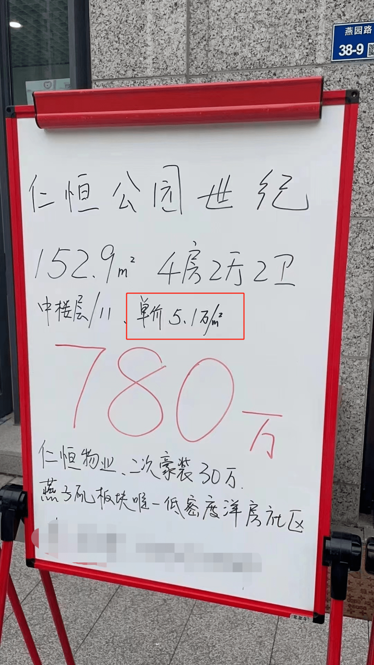 昨天,血拼姐看到燕子矶某中介门口挂出了一套仁恒公园世纪的房源,面积是152.9㎡,总价780万,单价高达5.1万/平!