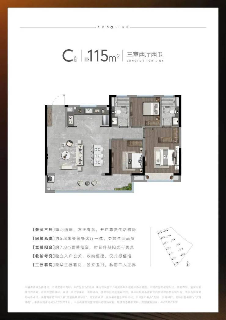 户型方面,打造了建面约89㎡、99㎡、115㎡三房产品以及建面约132㎡四房产品,整体两梯四户设计,对不同购房需求客群都很友好。