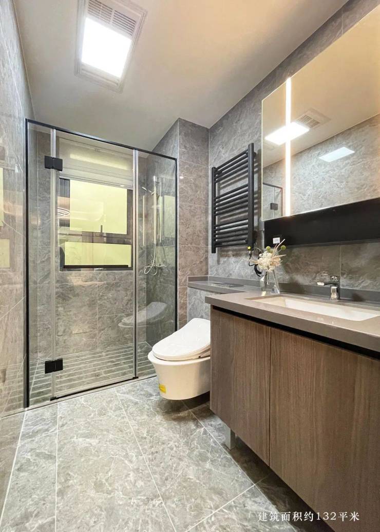 主卫同样配置齐全,科勒或乐家或TOTO的马桶、友邦或飞雕的风暖浴霸、淋浴屏采用的也是钢化玻璃门!(以开发商最终交付为准)