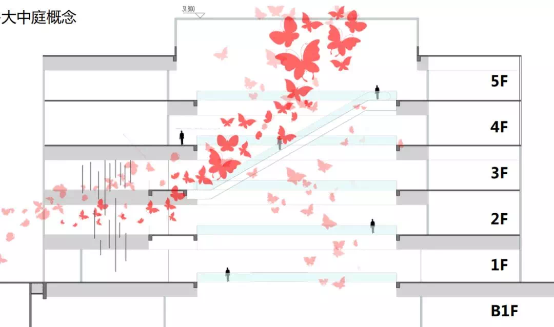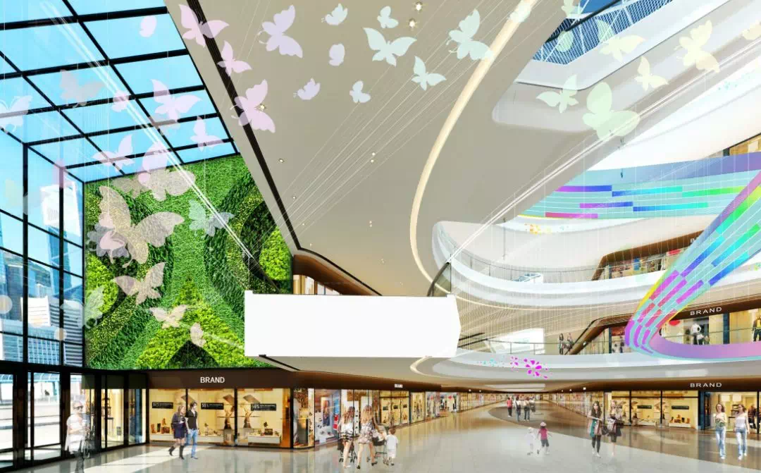 这,也将是南京排名前列家以“风情蝶谷”为主题的超级美学中庭,以层层递进的蝴蝶造型翩翩起舞,充分体现了荣盛商业美学(下图)。