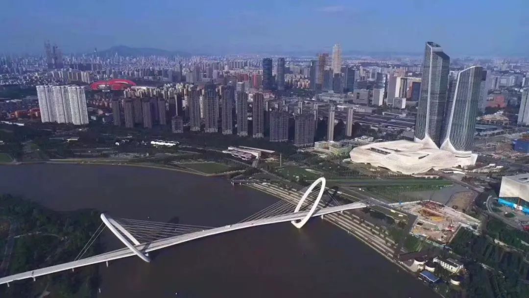 ▲ 南京眼步行桥和青奥双子塔