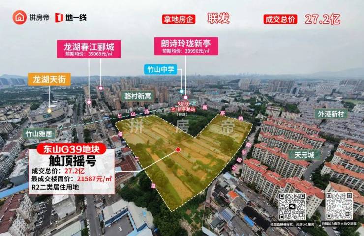 今年7月17日的土拍中,江宁东山G39地块经过13轮报价触顶最高限价,被联发拿下,成交楼面地价21587元/㎡!