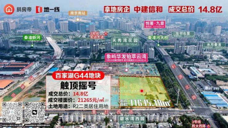 在今年8月25日土拍上,百家湖G44地块由中建信和(五局)触顶摇号竞得,成交总价14.8亿,成交楼面价21265元/㎡,热度非常高!