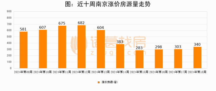 从调价房源来看,第17周南京涨价房源340套,较上周上涨12.2%。与此同时,17周涨价房源占比提升1.08个百分点,业主信心持续恢复。
