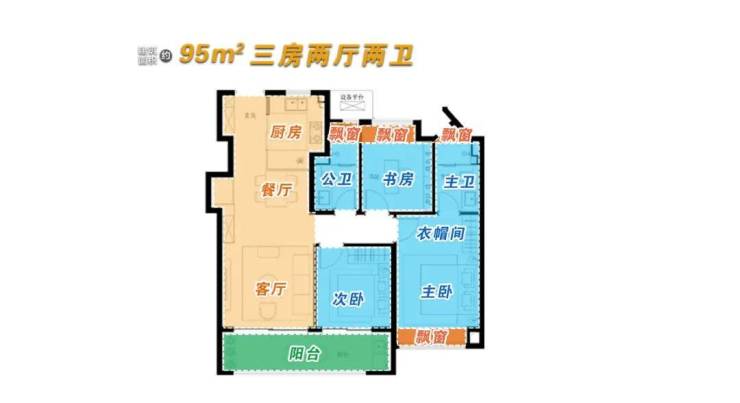楼盘建面约95㎡三房两厅两卫、110㎡三房两厅两卫、135㎡四房两厅两卫。目前,建面约95、110㎡样板间已正式公开。