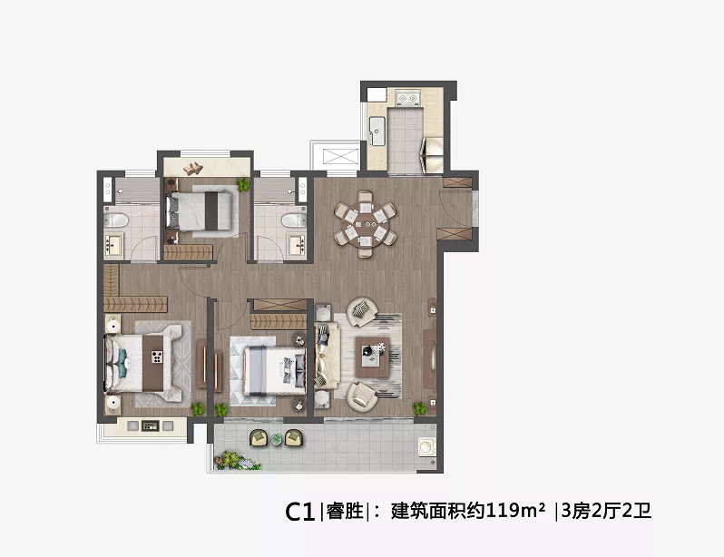 置业顾问继续补充道,其实这个客户一开始看中的是建筑面积约95㎡的户型,但在看完建筑面积约117㎡户型后,感觉这个户型更好。