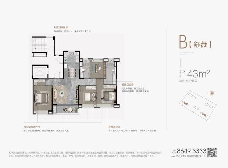 B户型 143㎡:南北通透,解决大家庭生活痛点