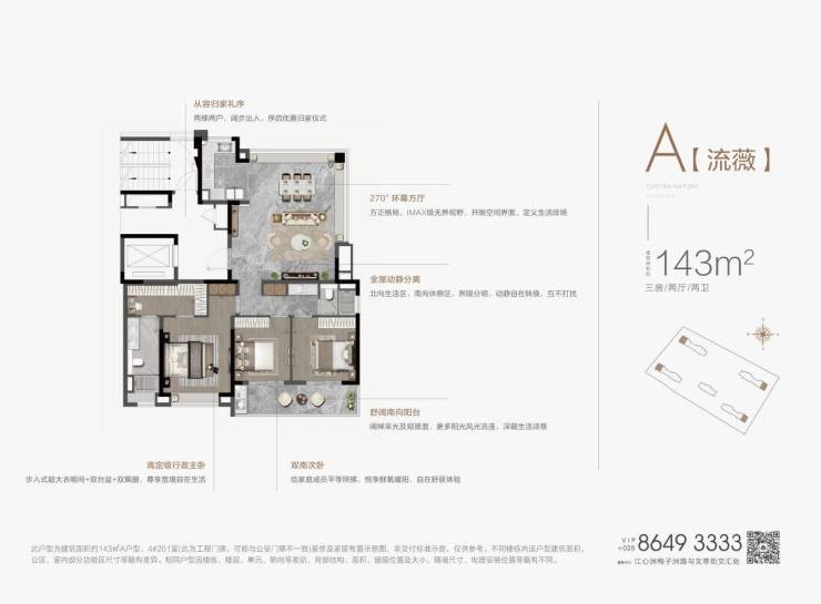 目前,项目进入准现房阶段,今年换新明年住,主力在售3#、4#楼王,另2#、5#少量房源在售(以上楼栋房号为工程编号,实际交付以公安编号为准,可能存在差异),含包均价约4.7万/㎡。项目雅境会所、架空层乐活PARK、地库、大堂、143A精装样板间、143B清水样板间、173C生活行家体验馆等空间全部实景展示。
