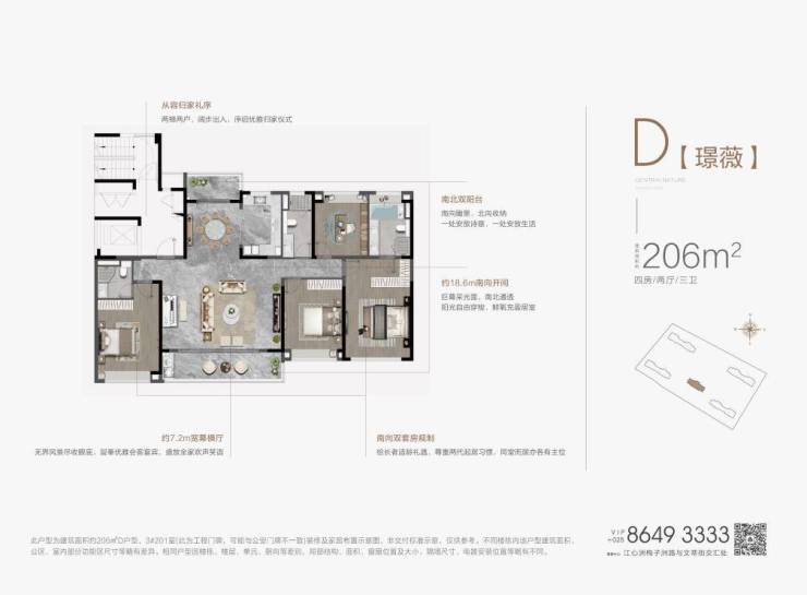D户型 206㎡:央景正席视野,岛内罕见200㎡+千万级大平层