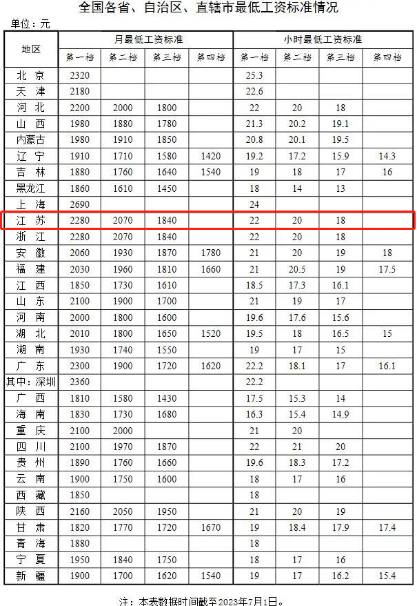 江苏上调全省最低工资标准